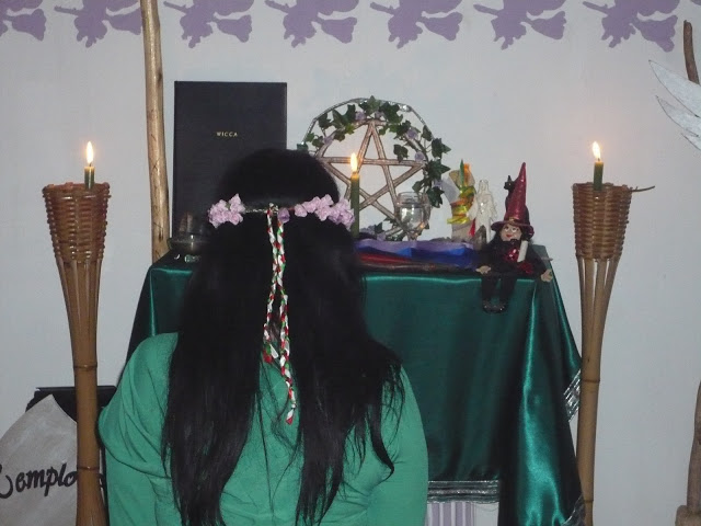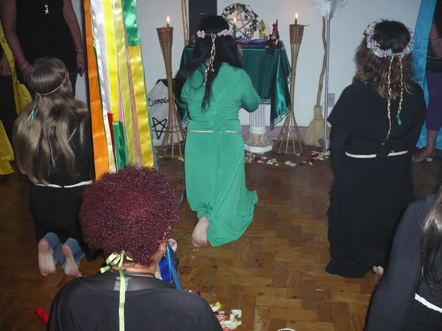 São exatamente sete horas da noite de um domingo. Adeptos se aglomeram na entrada do ‘Templo de Bruxas’. Como som de fundo, uma música diz: “Somos um círculo dentro de um círculo, sem um começo e sem um fim”. As pessoas entram no local de culto. Cada um tem na cabeça uma coroa de flores, é a celebração de Beltane, o ritual de germinação que representa a união do Deus e da Deusa. Pelo chão, pétalas de rosa para purificar, no meio um mastro com fitas coloridas que serão enroladas na hora de realizar os pedidos.