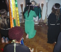 São exatamente sete horas da noite de um domingo. Adeptos se aglomeram na entrada do ‘Templo de Bruxas’. Como som de fundo, uma música diz: “Somos um círculo dentro de um círculo, sem um começo e sem um fim”. As pessoas entram no local de culto. Cada um tem na cabeça uma coroa de flores, é a celebração de Beltane, o ritual de germinação que representa a união do Deus e da Deusa. Pelo chão, pétalas de rosa para purificar, no meio um mastro com fitas coloridas que serão enroladas na hora de realizar os pedidos.